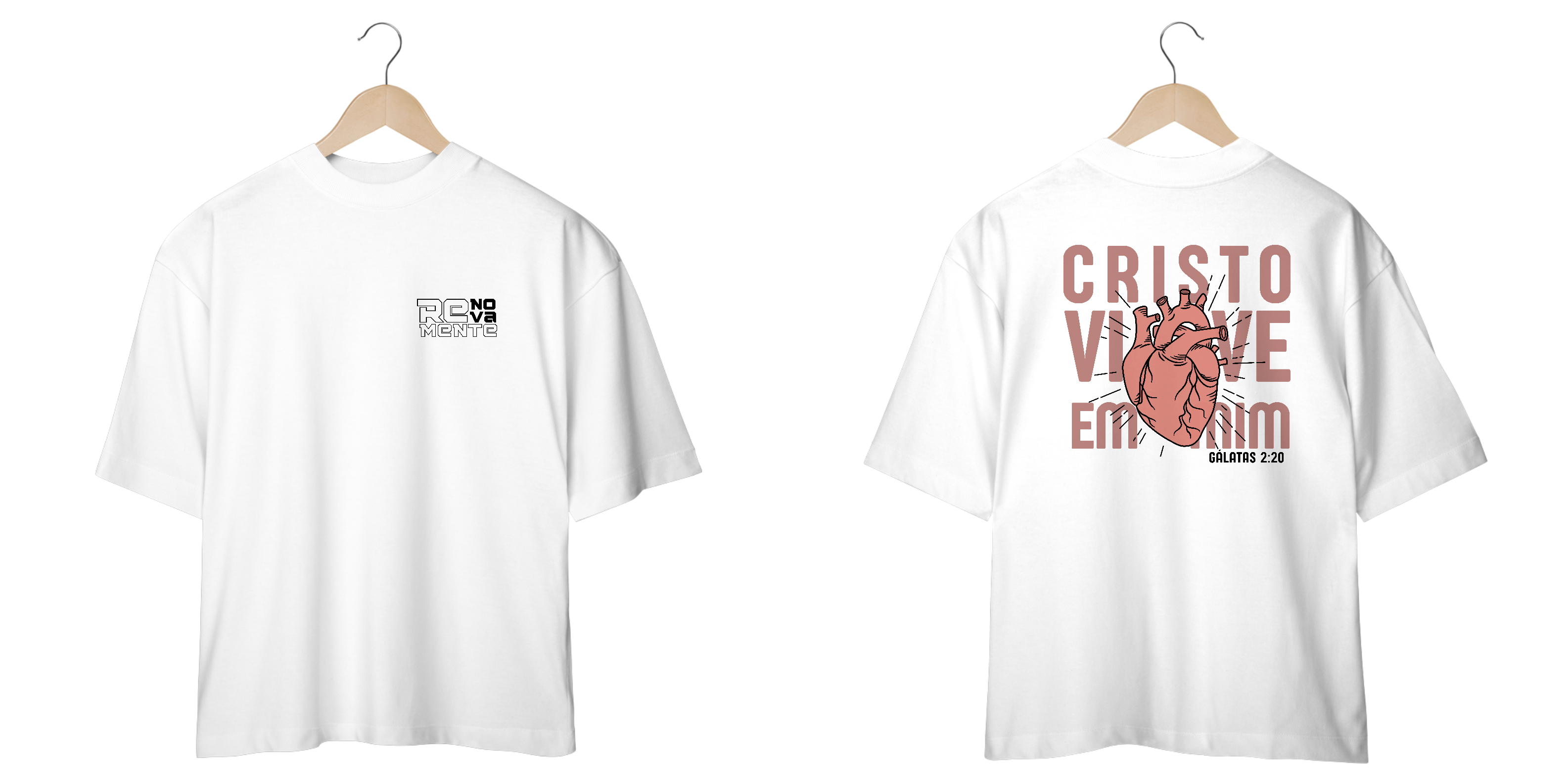 Cristo vive em mim, modelagem mais ampla e larga do que as camisetas convencionais, proporcionando um caimento relaxado e confortável.