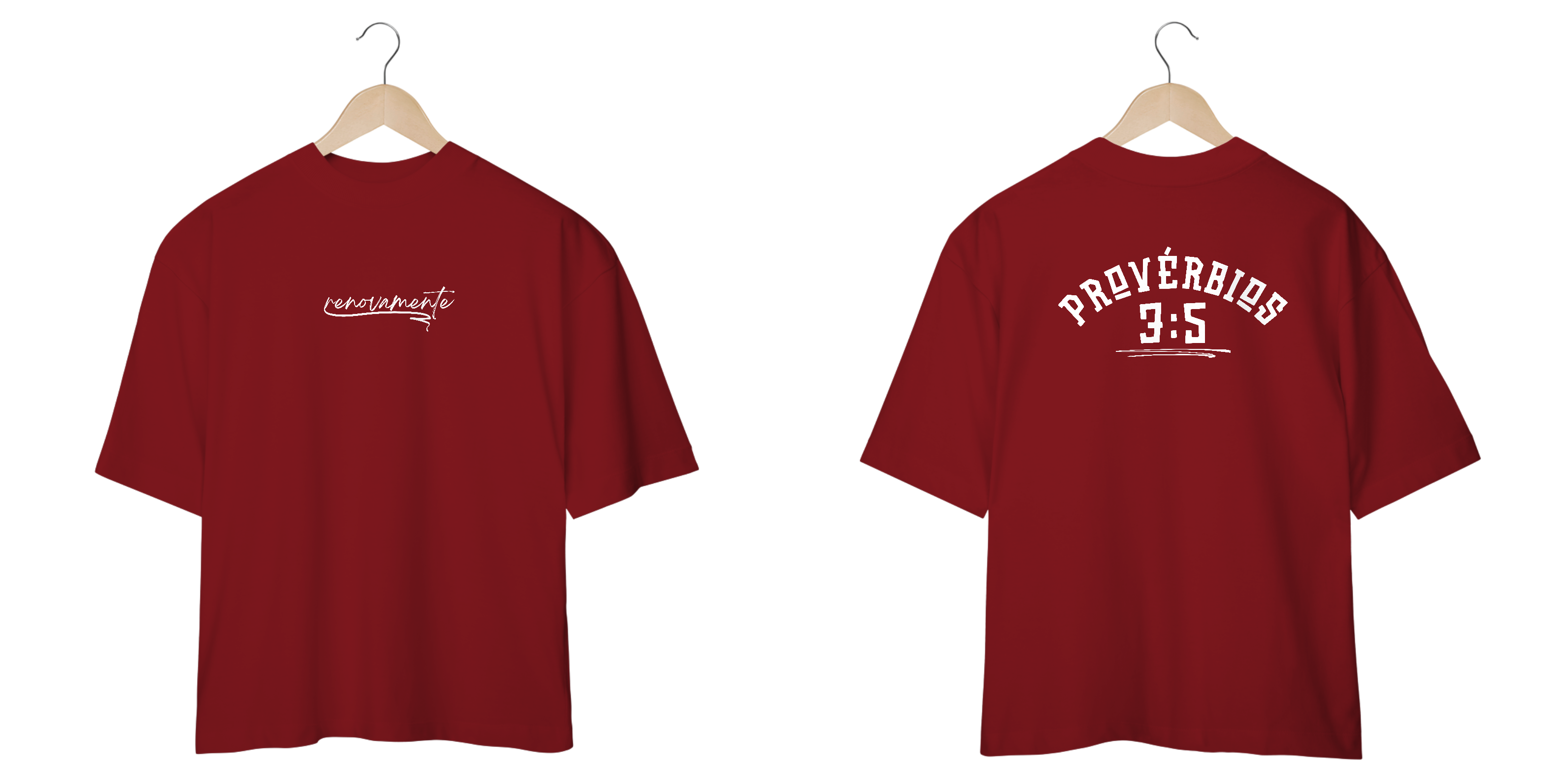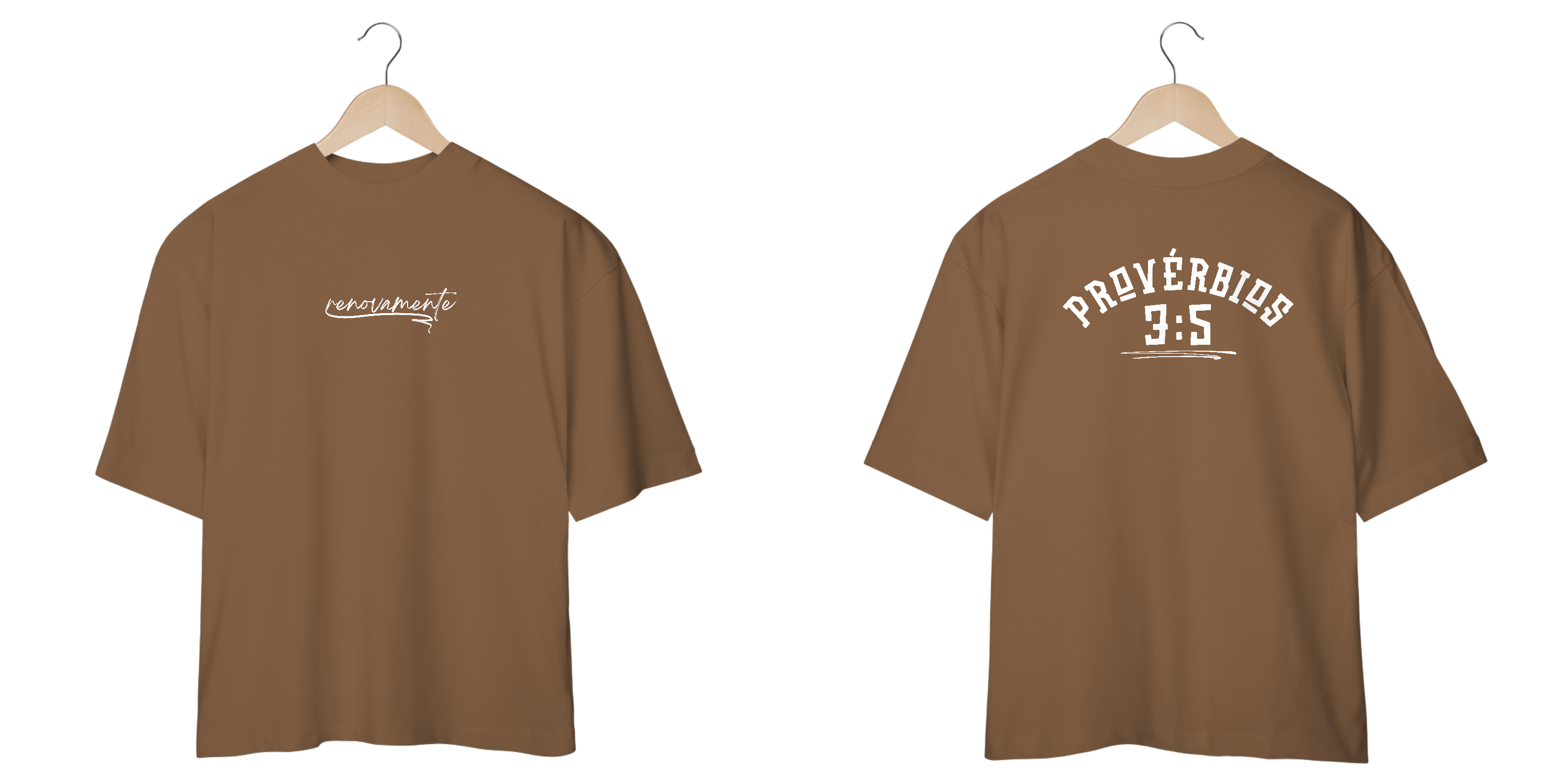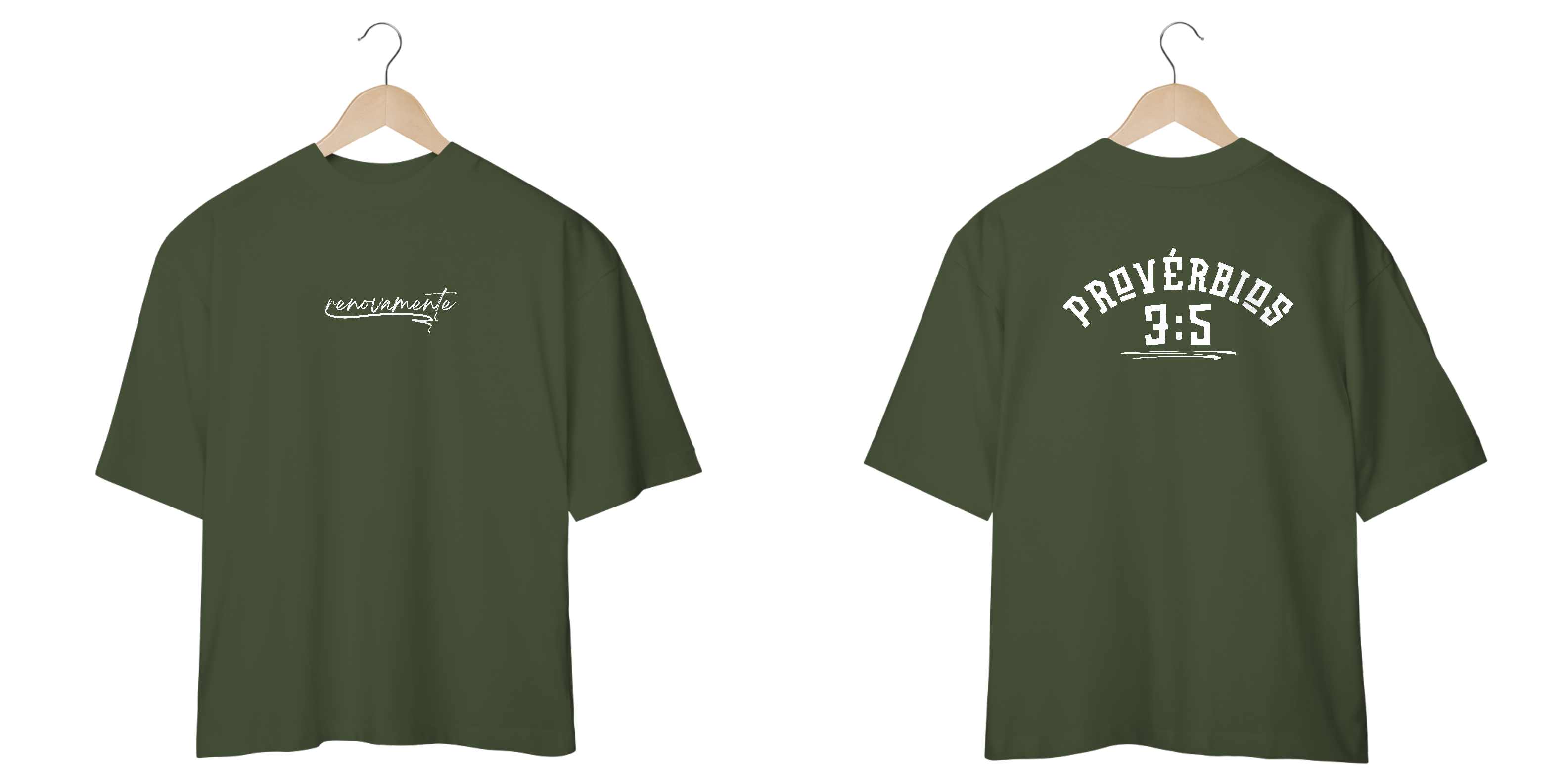 Provérbios 3:5, modelagem mais ampla e larga do que as camisetas convencionais, proporcionando um caimento relaxado e confortável.