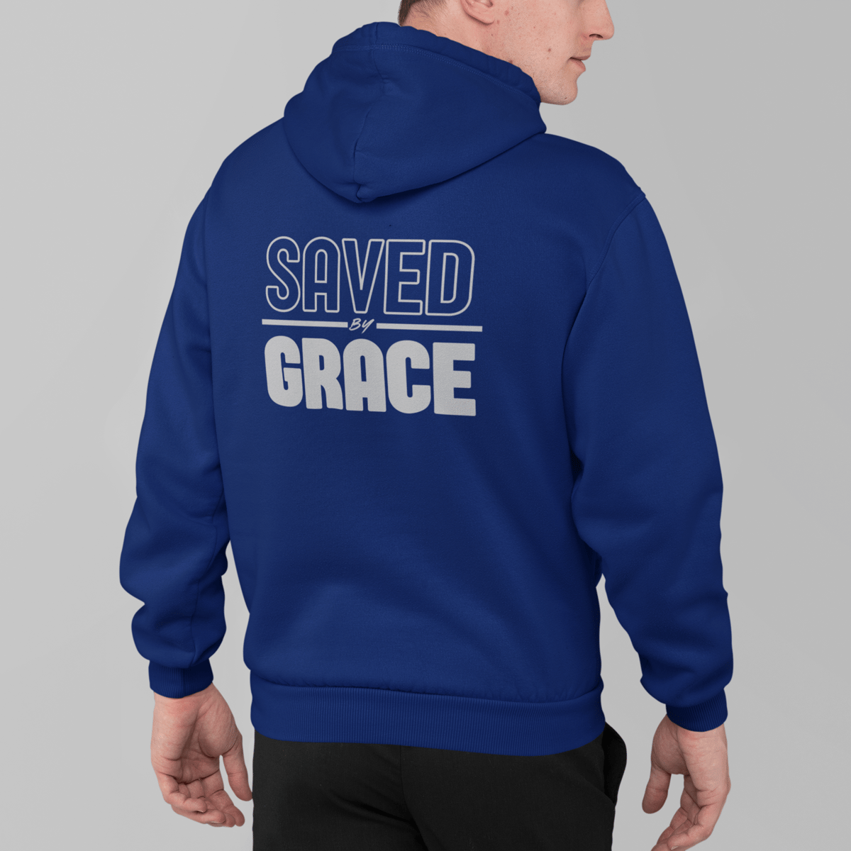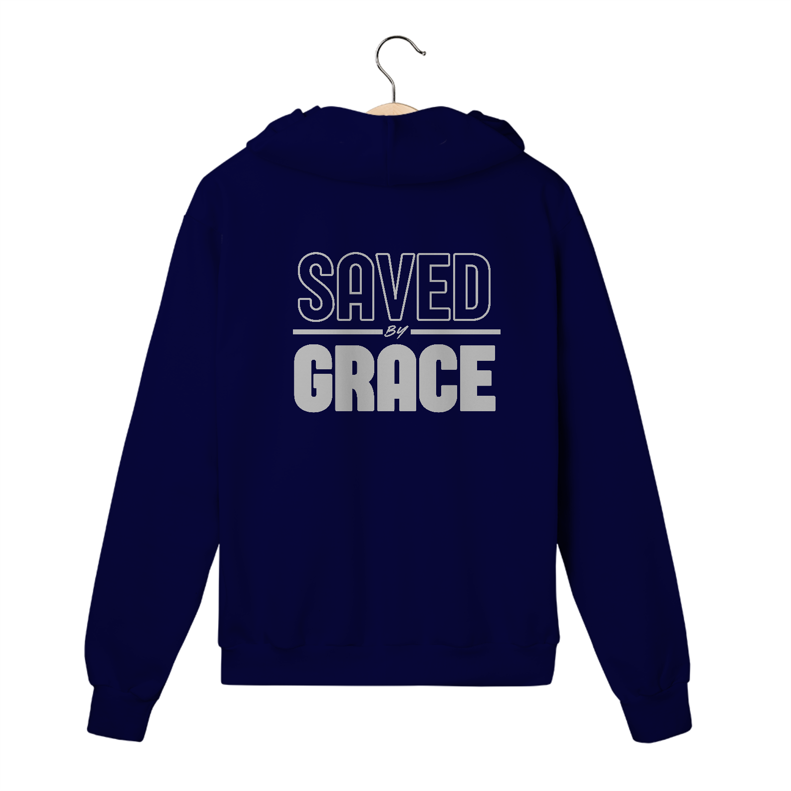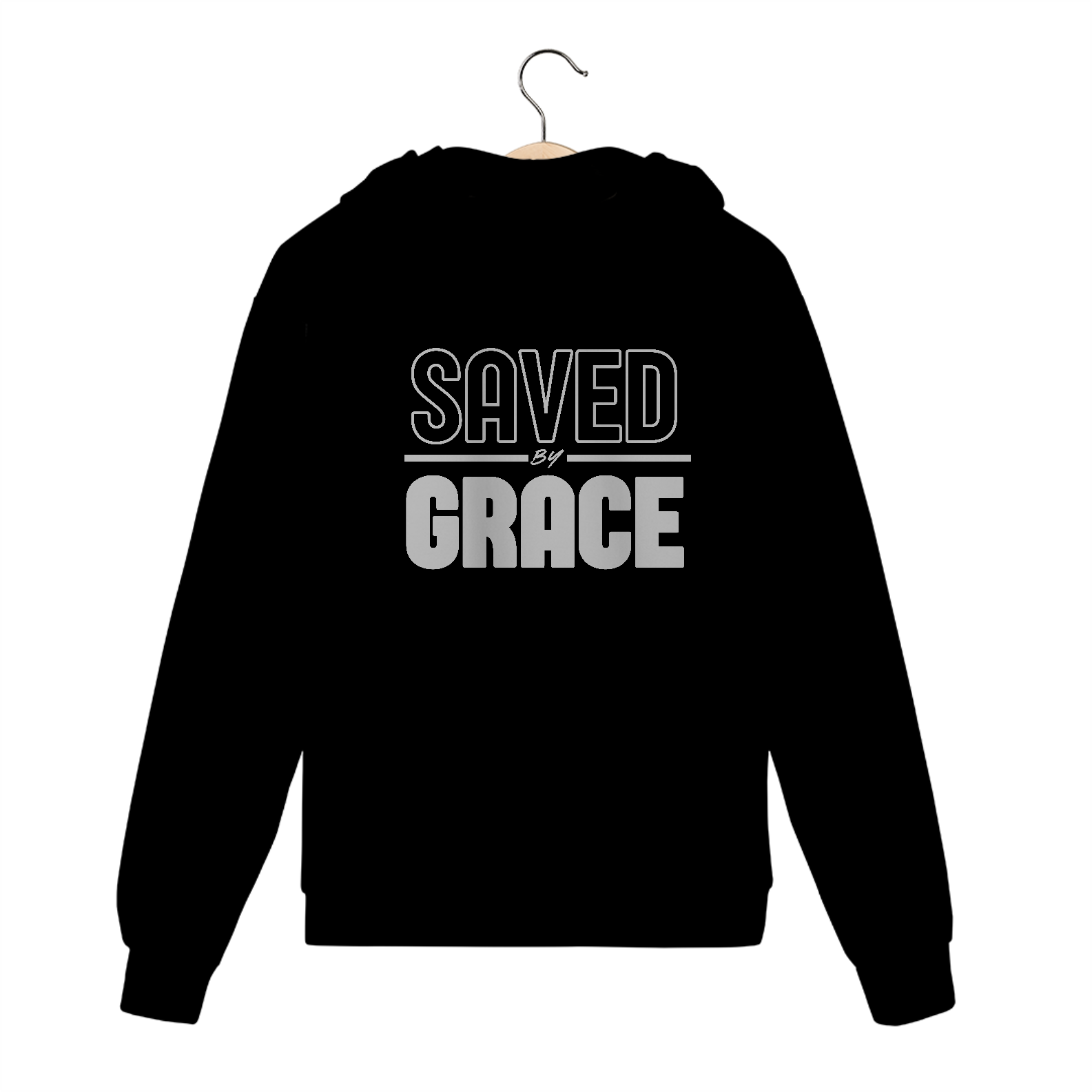 Saved by Grace, moleton 45% algodão e 55% poliéster, interior flanelado, punho e barra em retilínea.